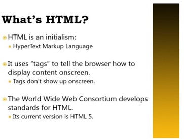 The bullet points format is the default layout for most PowerPoint users and viewers. Slides created in this format commonly include a title across the top and a cascading series of bulleted lines of text inside a slide’s main text box. Here is an example of this kind of slide.
